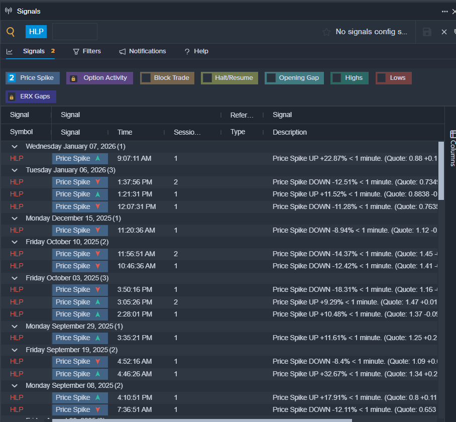 - Benzinga Pro’s signals feature notified of a potential breakout in HLP shares.