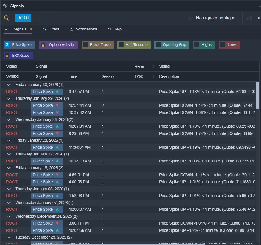 - Benzinga Pro’s signals feature notified of a potential breakout in ROOT shares.