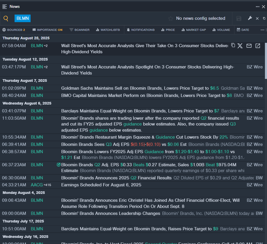 - Recent News: On Aug. 6, Bloomin’ Brands reported second-quarter financial results and cut its FY25 adjusted EPS guidance below estimates.