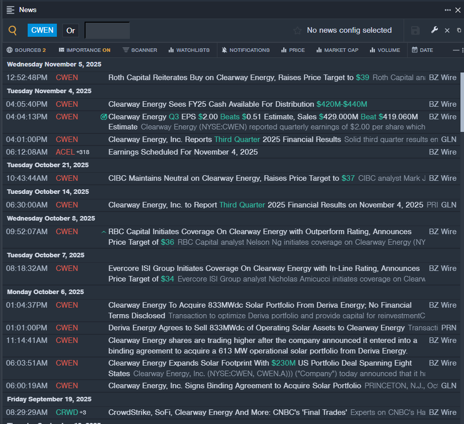 - Benzinga Pro’s real-time newsfeed alerted to latest CWEN news