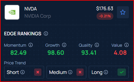Benzinga’s Edge Rankings place Nvidia in the 93rd percentile for quality and the 98th percentile for growth, reflecting its strong performance in both areas. Check the detailed report here.
